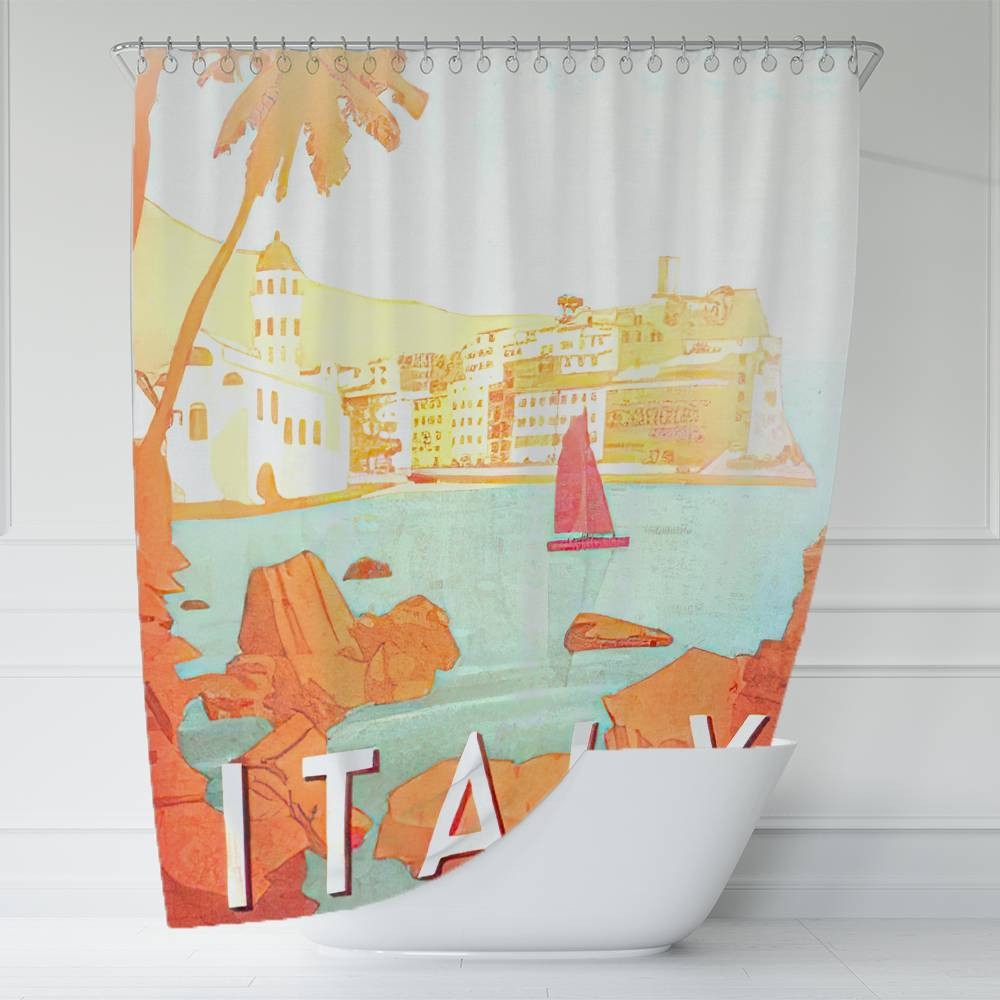 Italy Cinque Terre Art Shower Curtain, Extra Long 71 Inch