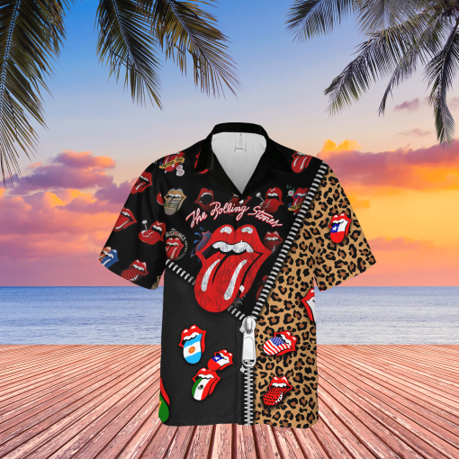 The Rolling Stones Unzipped Pattern Hawaiian Shirt